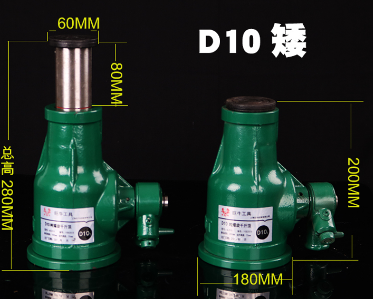 2、不同噸位的螺旋千斤頂高矮胖瘦也不同。比如說10噸高瘦螺旋千斤頂和20噸高瘦螺旋千斤頂?shù)膮^(qū)分,也區(qū)分在了頂升高度,底座寬度,與頂蓋的寬度上,見圖可知道。